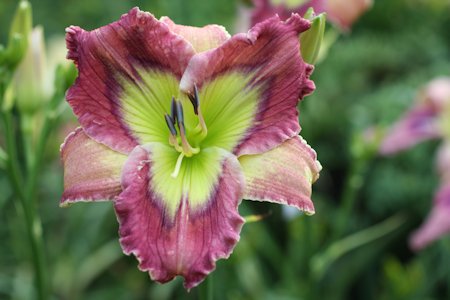 MALACHITE SUNBIRD was one of my favorite sunbirds that I saw in Africa. MALACHITE SUNBIRD has smoky rose petals with lighter stippled sepals and a distinct purple chevron eye. MALACHITE SUNBIRD has a giant emerald throat. This bloom also polytepals a lot. 35 budcount, 3-4 way branching. Easily fertile both ways.